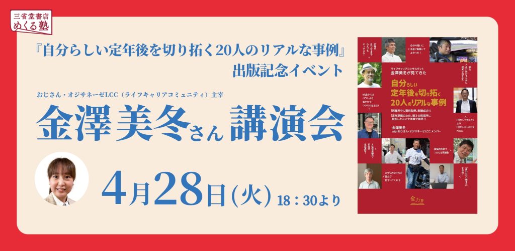 定年前後の不安や迷いに向き合いながら、自分らしい人生を切り拓いている20人のリアルな事例をもとにした出版記念イベントです。肩書やこれまでの延長ではなく、「これからどう生きるか」を考えるヒントが詰まっています。